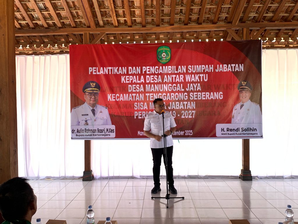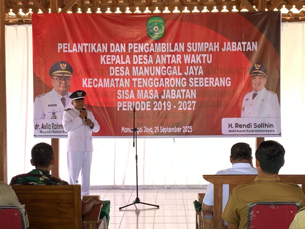 Tenggarong Seberang – Bupati Kutai Kartanegara dr. Aulia Rahman Basri, M.Kes. secara resmi melantik Dirjam MS, S.Pd. sebagai Kepala Desa Paruh Waktu Desa Manunggal Jaya pada Senin, 29 September 2025, bertempat di Pendopo Desa Manunggal Jaya, Kecamatan Tenggarong Seberang.